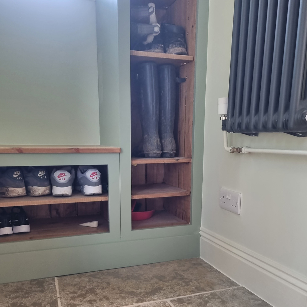 This boot room was designed to be practical, organised and welcoming a hardworking space that sets the tone for the rest of the home. The client wanted functional storage, warm colours and finishes that could handle everyday use without compromising on style. We refinished the joinery, freshened the walls and added thoughtful details to create a clean, cohesive look.