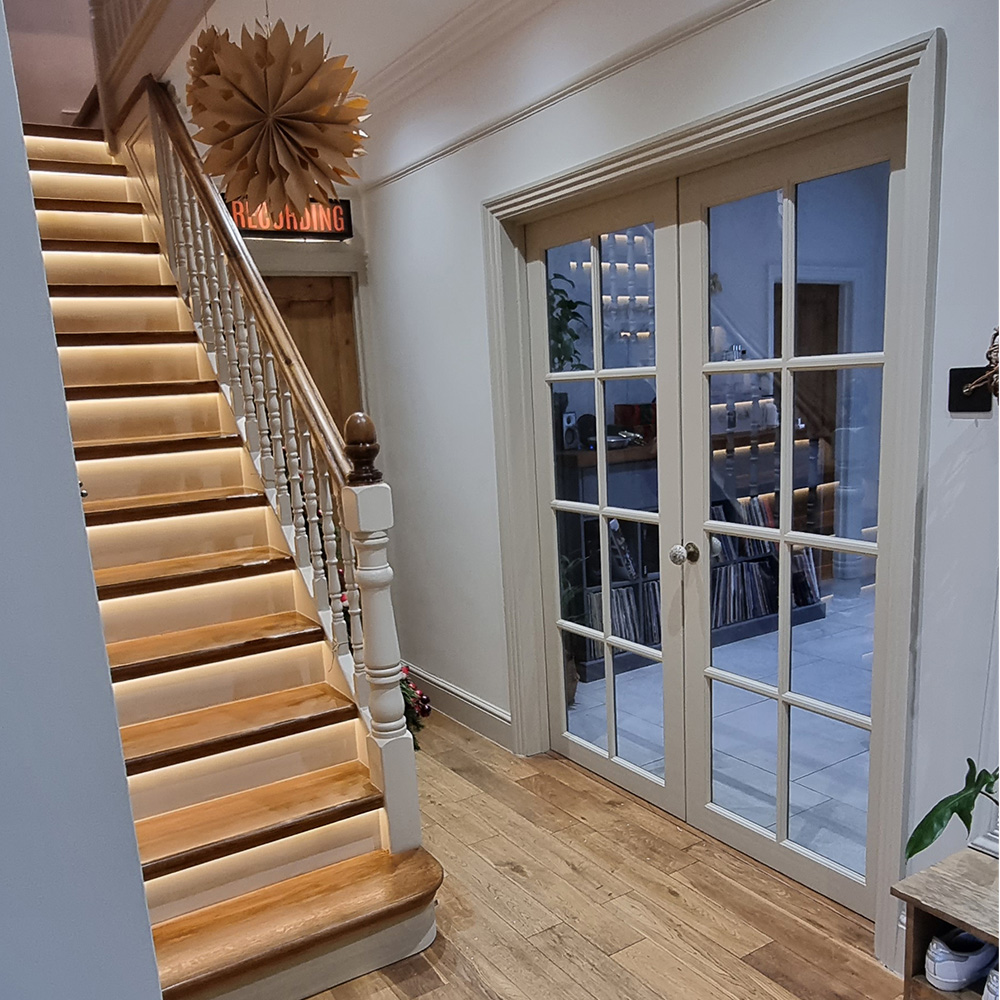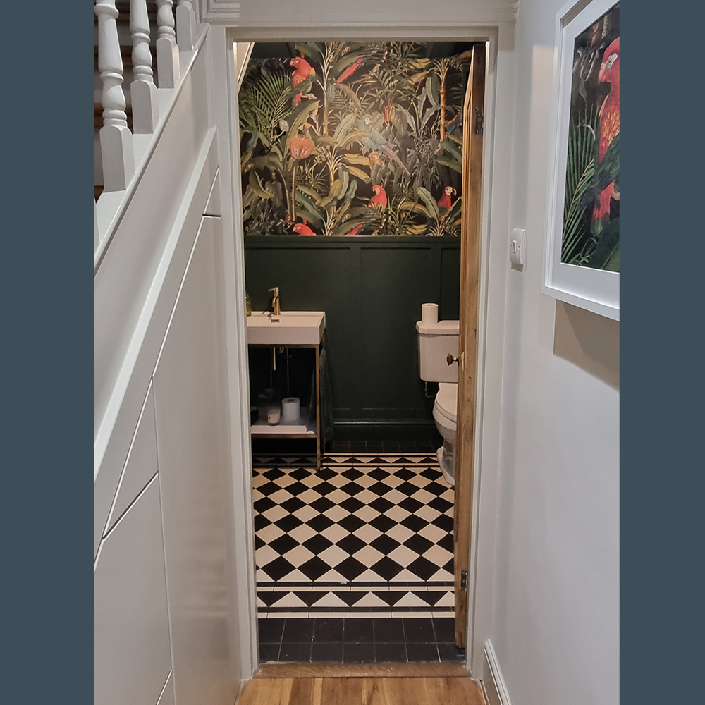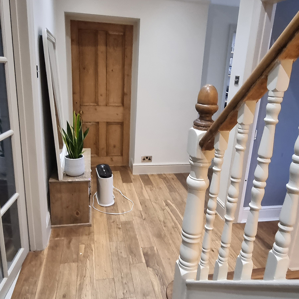 A full hallway, landing, staircase, and cloakroom redecoration in a Horsham property. The project focused on restoring tired surfaces, refining architectural details, and creating a bright, welcoming entrance space.
